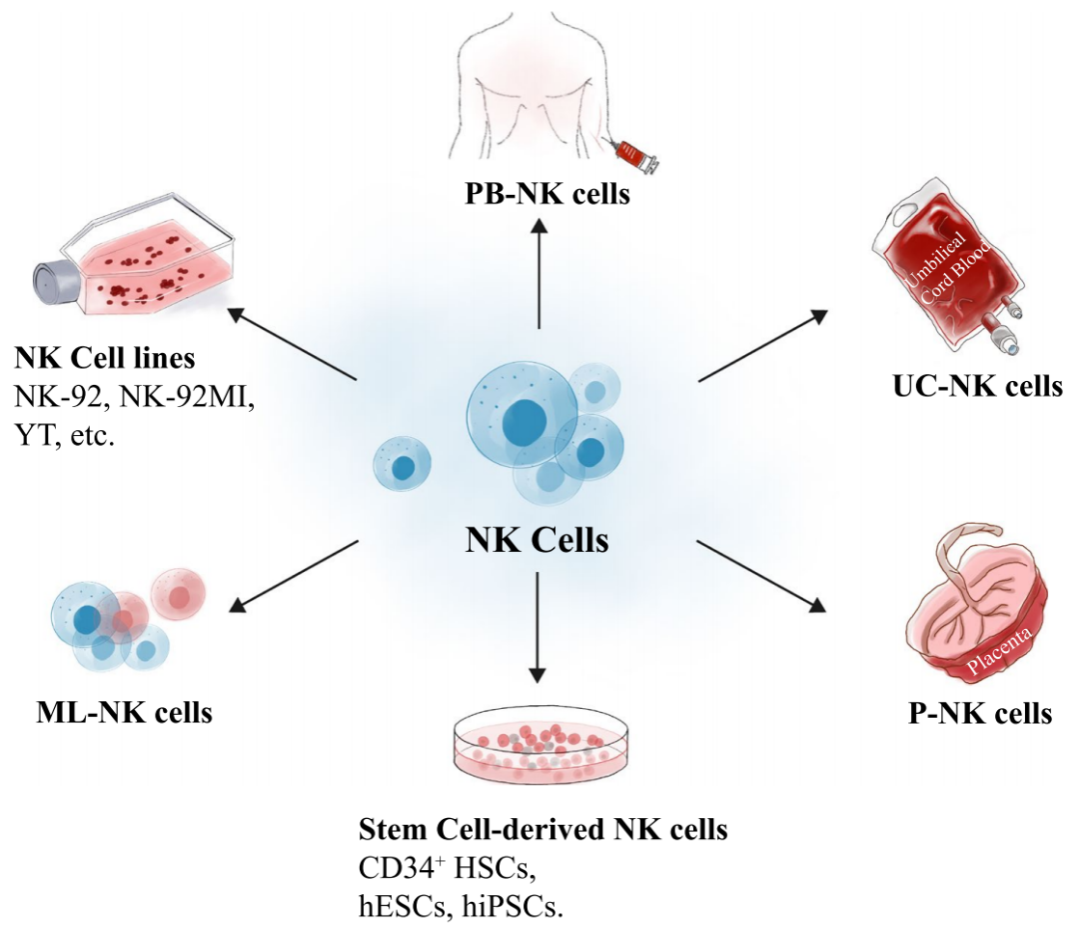 NK细胞可以从多种途径获取,如外周血、脐带血、NK92细胞系等,不同途径来源的NK细胞发挥的生物学作用各有差异。